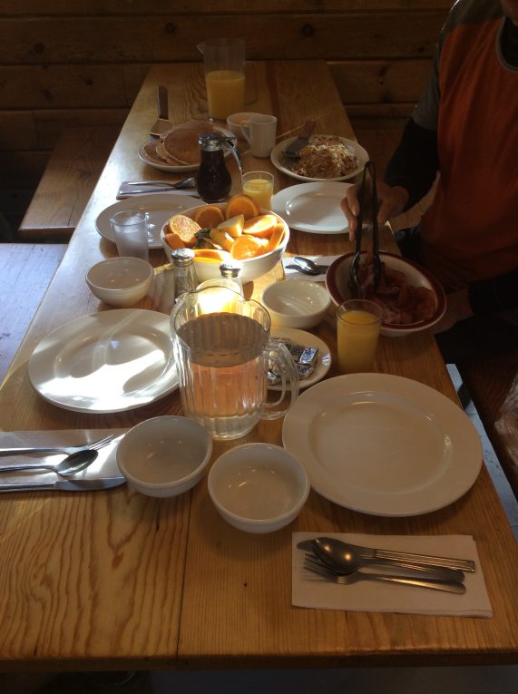 Jag är glad över att vi valde helpension, frukosten var helt underbar. Maten som serveras är enkel men vällagad. Det serveras pannkakor, spenat- och svampomelett, hashbrowns, färsk frukt, bacon, kaffe, te och juice till frukost. Efter frukost plockas papperspåsar fram så att vi kan göra lunchpaket med smörgåsar med diverse pålägg bl.a. Hummus, hembakade kakor, chips och äpplen. Lyx!