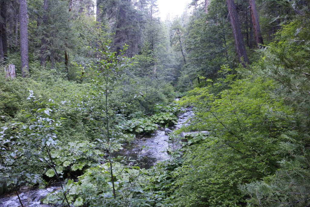 PCT går fortsatt genom skog. Vi började genom lövskog, arbetade oss upp till barrskog för att sen komma ner i lövskog igen innan det vände och åter gick upp till barrskog, 7 Miles segdragen stigning. Kommer upp till platån och Lookout Rock. Upp och ner, upp och ner fram till Bucks Lake Road där det åter var dags för 5 Miles uppåt innan leden jämnades ut för att efter några Miles bära av utför igen…