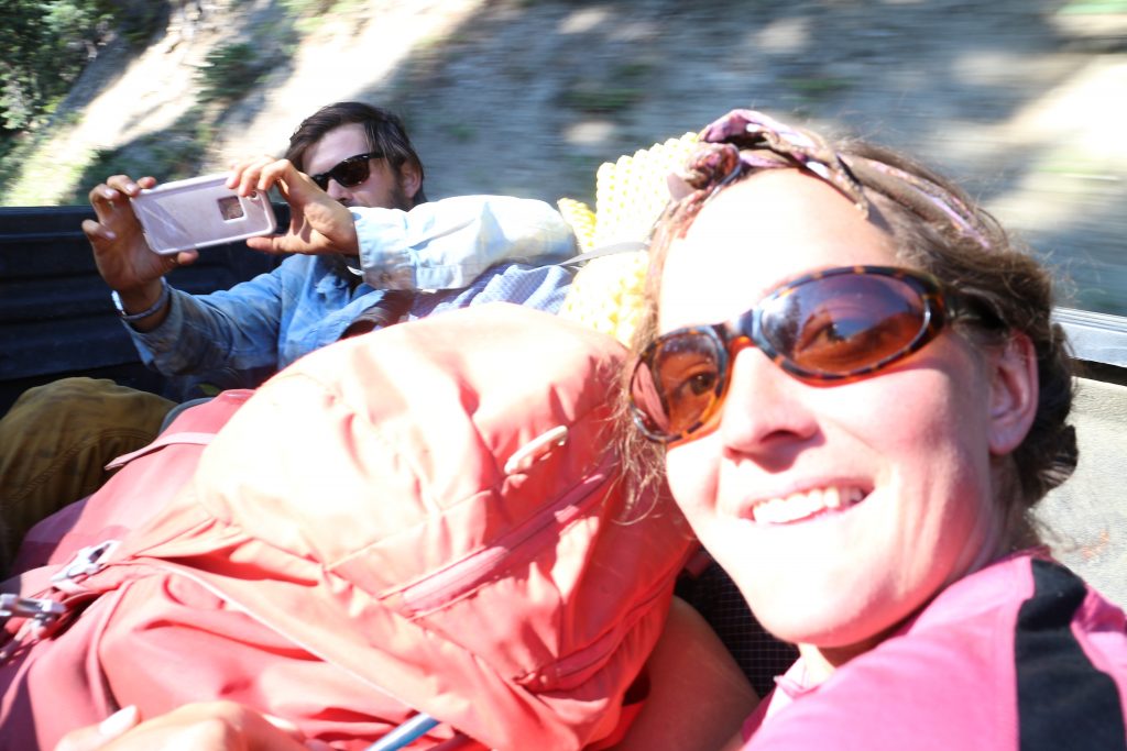 Vi går dom sista 10 kilometrarna till vägen mot Etna. Vi kommer dit tidig förmiddag och det sitter redan fyra andra vandrare där och försöker få lift av dom få bilar som passerar. Ytterligare ett par vandrare dyker upp efter oss. Efter en knapp halvtimme stannar en pickup och plockar upp oss allihopa. Fyra av oss, däribland jag och Henrik, får sitta på flaket och de 10 Milesen ner till Etna. Kurvig väg och bara nedför. Det gick väldigt smidigt! Väldigt tacksam för det.