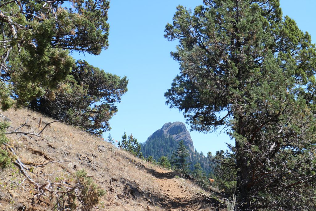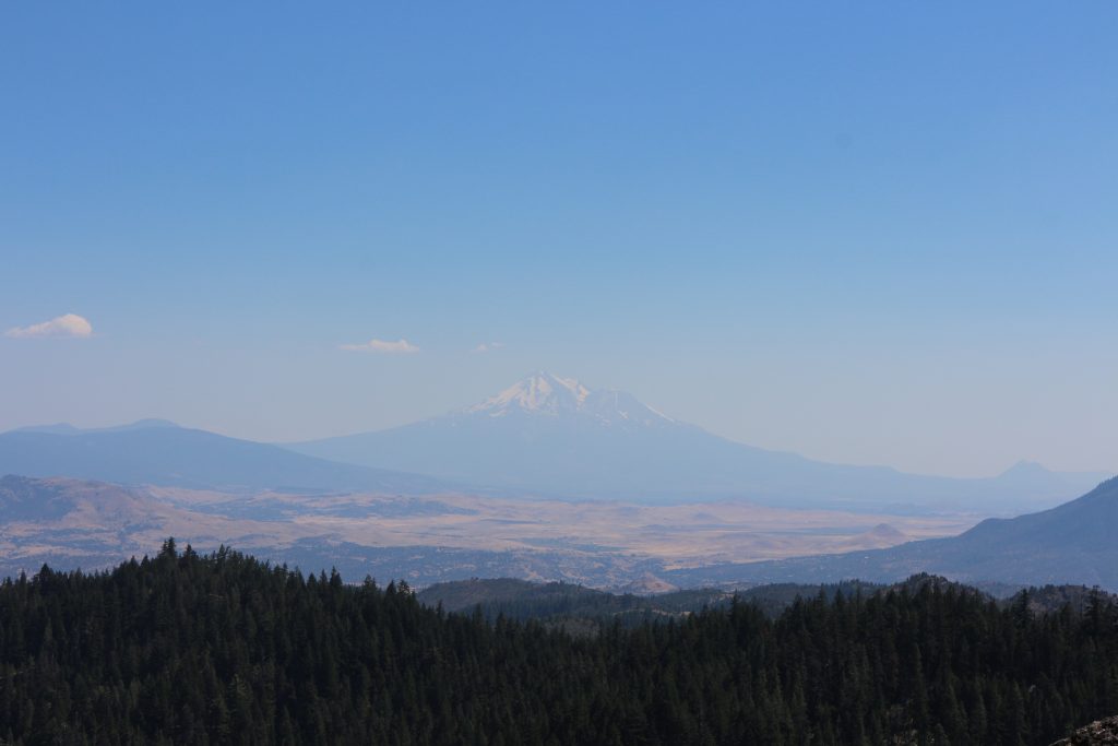 Vi vandrar tunga och sega i kroppen som vanligt efter stadsbesök. Mycket upp i början. Passerar en ”monolit” -en brant bergstopp i landskapet. Fin utsikt mot Mt. Shasta. Varm eftermiddag. Möter en del kända ansikten på vägen till dagens tältplats. Vi möter Clean Sweap vid ett vatten, gav bort min gaffel till honom då han tappat sin.