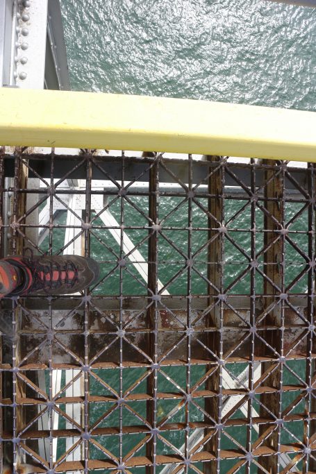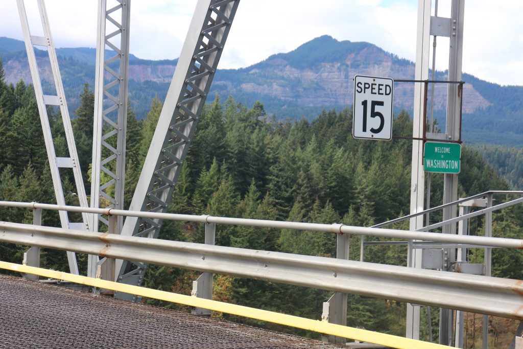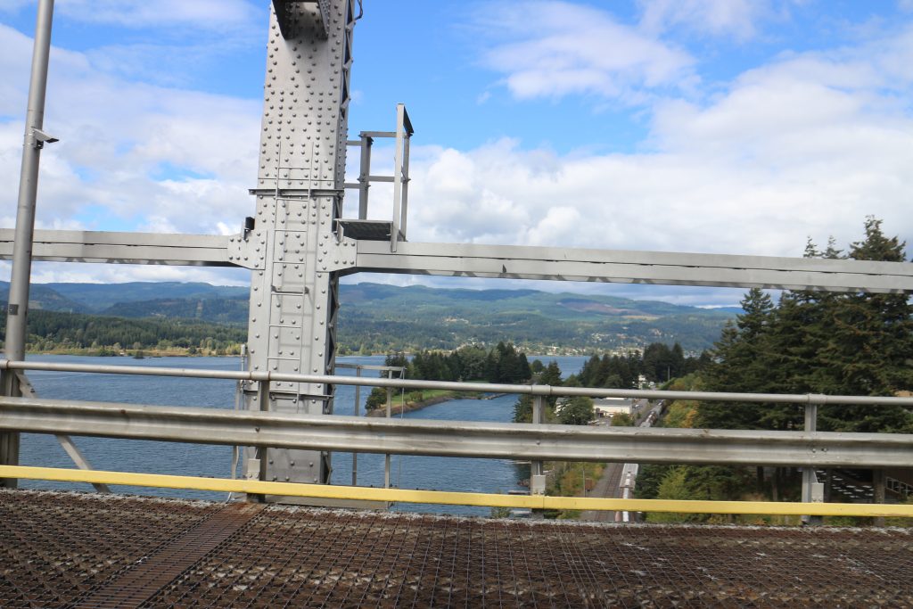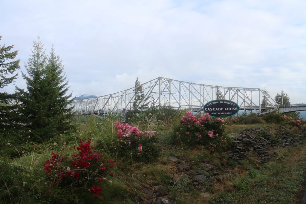 Blir bryskt uppväckta av parkvakt/toalettstädare kl. 6 som meddelar ”no overnight camping here!” Vi och två andra tält packar samman, äter frukost och går cykelvägen in mot Casacade Locks. Strax före ”centrum” passerar vi den omtalade ”Bridge of the Gods” bron som går över