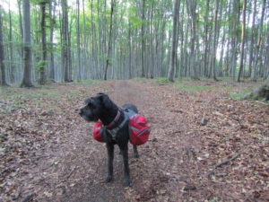 Vandringen till Brezova pod Bradlom gick snabbt. Enkel vandring mestadels nedåt på skogsvägar. Jag var glad över att komma fram dit tidigt på förmiddagen för ingenstans är värmen så varm som i städer/samhällen. Jag tycker inte att hundarna ska behöva gå i onödig hetta. I Brazova blev det hursomhelst en paus. Hundarna fick vila medan jag uträttade några ärenden. Så här på turens femte dag har jag haft tid att tänka igenom min packning och hittat fyra saker jag inte kommer att ha användning av. Därför skickade jag hem dessa saker med post. Jag handlare fika i en mataffär och lyxade innan vi gick vidare.