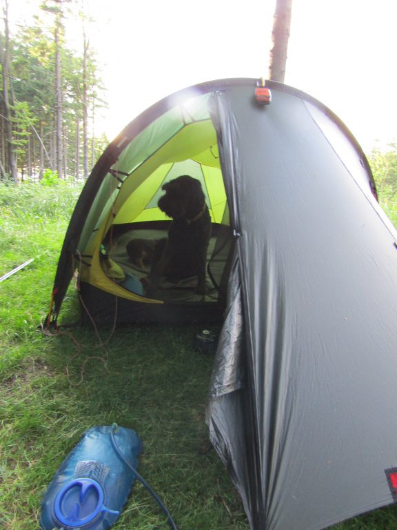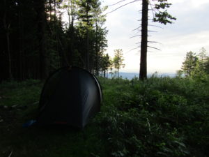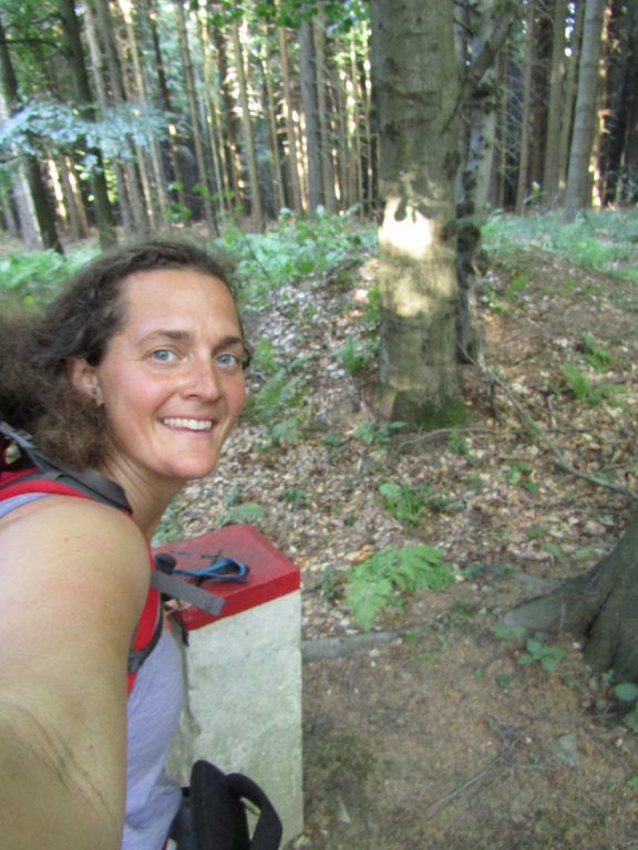 Kl. 16 hade värmen inte avtagit än, men stora moln som hotade om regn dragit in. Regnet lös däremot med sin frånvaro. Flera micropauser senare befann vi oss åter i underbar skog. Något som överraskat mig positivt är alla vindskydd som finns utställda längs leden. Vi tog ännu en paus i ett av dessa innan vi gick sista biten till Tjeckien! Just nu har jag tältet uppslagit på tjeckiska sidan av gränsen. Leden kommer nu att gå mer eller mindre helt på landsgränsen några kilometrar.