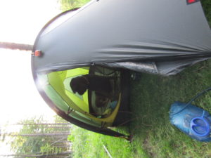 Klockan är strax före fem på morgonen och jag hör regn som smattrar mot tältduken. Ett mysigt och behagligt ljud. Men också ett ljud som gör att jag gärna drar mig en liten extra stund. Jag är väl medveten om att det alltid låter mer inifrån tältet mot hur mycket det egentligen är. Det är konstigt det där med regn. Inga problem att vara ute i (med rätt kläder), men desto svårare att gå ut i.