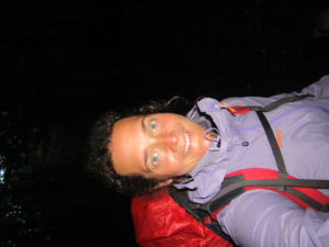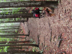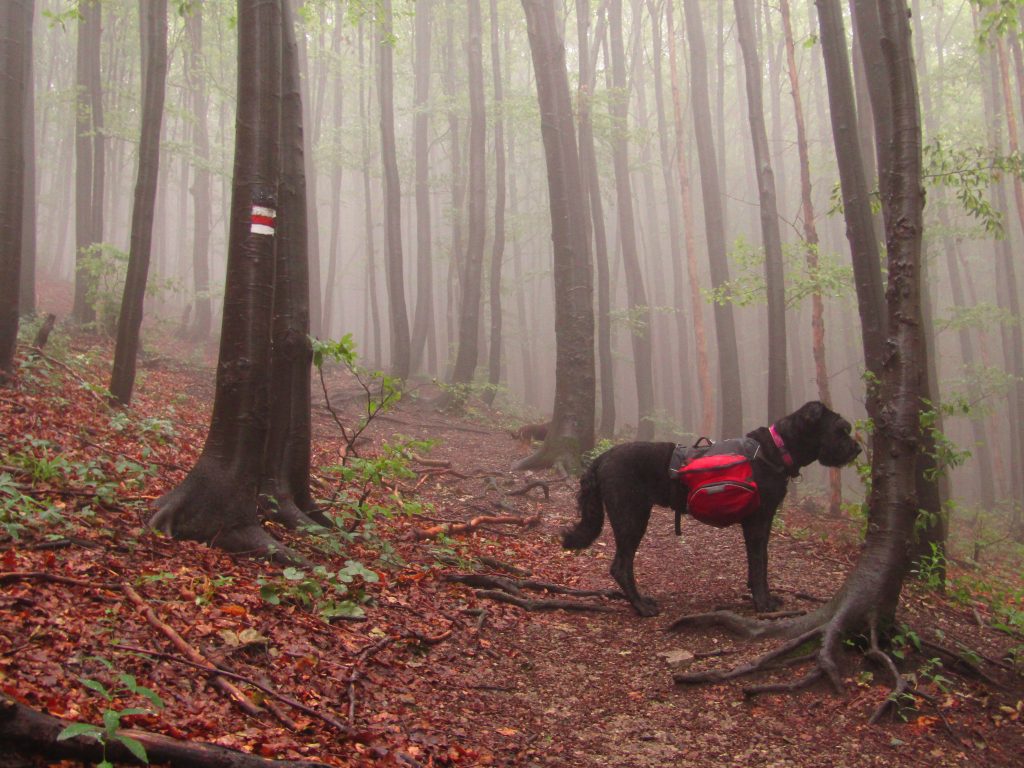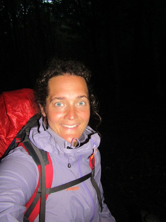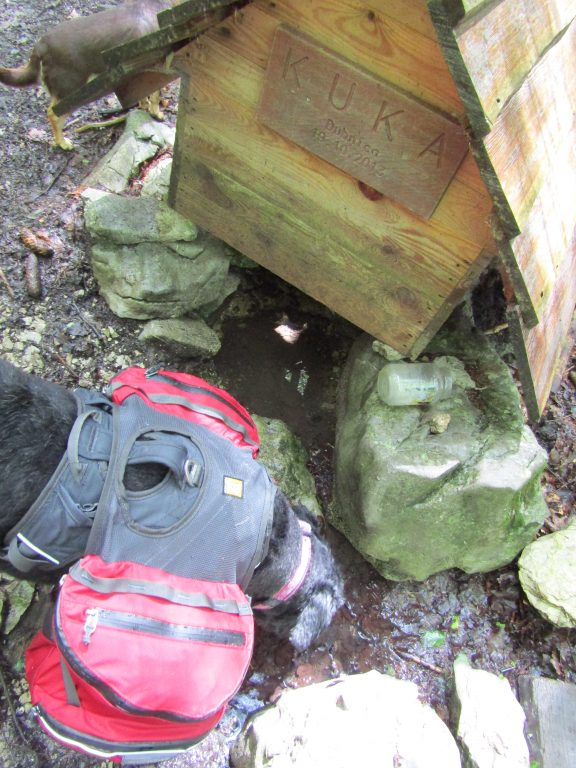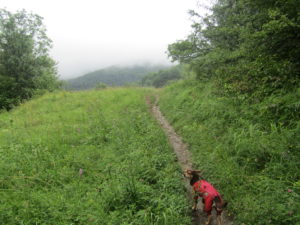 I natt hamnade vi i tidernas åskoväder. Det var som att återuppleva millenieskiftet. Det mullrade inte bara samtidigt som det blixtrade utan det small och för varje smäll skakade marken. Hundarna var helt oberörda, jag delade inte deras lugn helt och hållet. Jag var däremot glad över att jag inte valde den fina tältplats jag passerade två kilometer tidigare, den hade varit betydligt mycket mer utsatt. Regnet höll i sig fram till tidig morgon. När jag packade samman vid 5 duggade det bara lite. Vid 6 avtog det helt och jag och hundarna kunde äntligen gå utan regnkläder. Trodde vi.. En halvtimme senare började det regna på nytt med besked. Ett ösregn som förvandlade stigen till en forsande bäck. Den blev förrädisk hal.