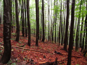 Efter 30 min gång slutade det att regna helt och hållet. Så himla härligt att få av sig regnkläder när det började gå uppför. För efter Zliechov väntade en stigning upp mot Strazov till nästan 1200 möh (ledens hittills högsta punkt) som bitvis var rätt så brant.