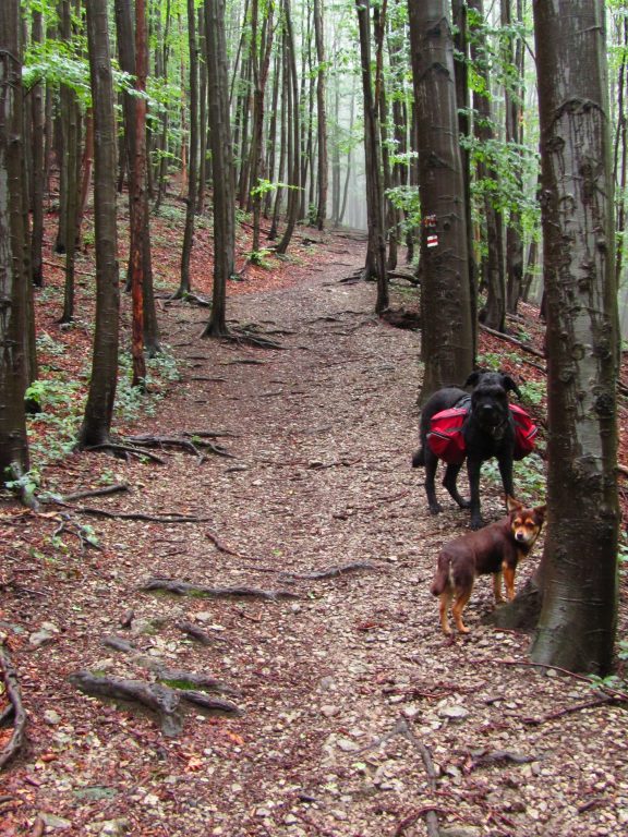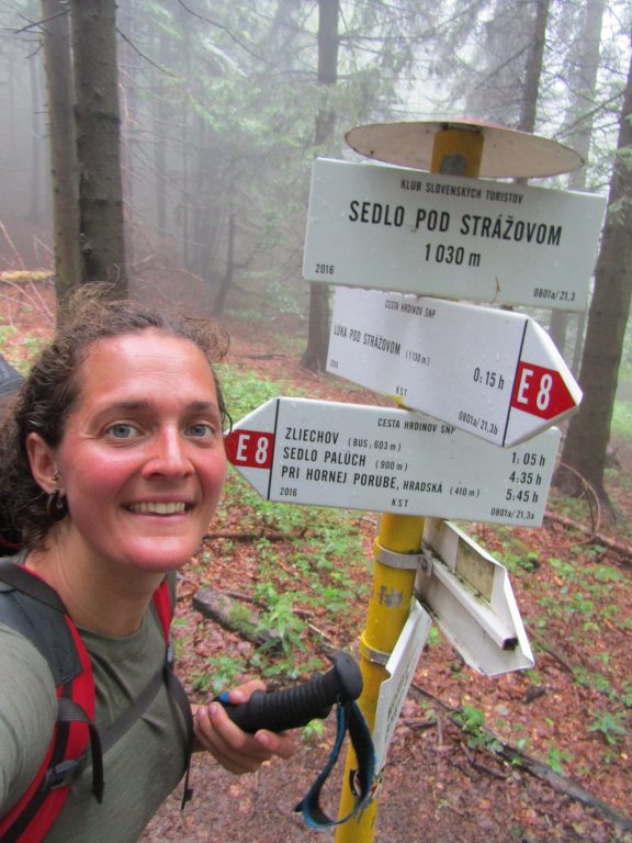 Vi gick på till Horna Poruba. Hittade ett tak att ställa oss under ett tag. Men vi var genomblöta så det var lika bra att gå på. I sånt här väder är det liksom bara att mata. En fot framför den andra och blicken strax framför fötterna. Fokus. Fullt fokus. Ganska skönt. Alla andra tankar försvinner. I uppförsbackarna var det som att gå två steg fram och ett steg bak då man gled i leran. Nedför var det bara att hålla tungan rätt i mun för att inte få en åktur. En stor fördel var att det inte var för varmt för att gå iaf!