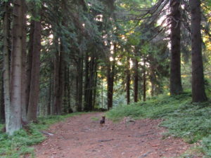 Efter en kort stunds vandrande genom skog kommer vi fram till Chata na Skalke. Min karta sa att där skulle det finnas ett hotell. I verkligheten fanns det flera. Jag hoppas på att kunna köpa snacks på ett av dom, men jag var där på tok för tidigt på morgonen. Hotellet stod dock öppet så jag gick in och satte min telefon samt powerpack på laddning. Lät dom sitta i 45 min innan vi gick vidare.