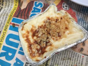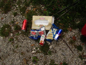 Jag hade bestämt mig för att gå till just Sedlo Maly Sturec (väg 14) och äta lunch där. Kanske inte den trevligaste platsen men ibland är det skönt att ha mål. Så när jag tagit mig dit satte jag mig på en avtagsväg och började tillaga min mat. Jag hann bara tillaga den till hälften då en man ropar på mig ”breakfast is served!”. Mannan visade sig heta Deniz och är en lastbilschaufför från Turkiet. Det visade sig också att sträckan han kör är Istanbul-Stockholm. Han bjöd mig på den mest fantastiska maten. Äggstekt bröd, omelett, kanske dom godaste oliverna jag någonsin ätit, ost, grönsaker, te och till sist turkisk efterrätt (himmelsk god) och melon. Allt jag kunde tänka var att jag hamnat i himmelriket. Det trodde nog hundarna att dom gjort med då Deniz även lagade mat till dom! Vi satt i samtalade och åt i säkert en timma. Trailmagic av det mest uppskattade slag. Vet inte hur jag med ord aka beskriva min tacksamhet över detta. När Deniz sen ska till att åka stannar han lastbilen efter bara ett par meter och kommer springande tillbaka med en påse i handen. Påsen var fylld med turkiska sötsaker, läsk, juice, vatten, solroskärnor. Allt jag gått och drömt om under hela förmiddagen. Galet.