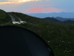 Övermätt kunde jag sen gå vidare till Kralova Studna Hotel. Ett superfint och trevligt hotell på över 1300 möh. Det tog några timmar att gå dom 10 km och 500 höjdmetrarna dit. Men vilket landskap vi hamnade i! Berg på riktigt! Jag stannade till på hotellet och åt middag samt lyxade med en dusch innan vi gick några kilometer till upp mot Kriza. Hittade en helt fantastisk tältplats med underbar utsikt!