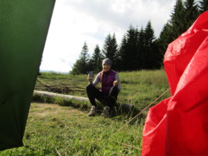 Sista biten av dagens vandring gick brant ner till Hiadelske Sedlo. Klockan var bara 16.30 men här fick vi så lov att stanna i alla fall. Tältförbud i nationalpark väntade.