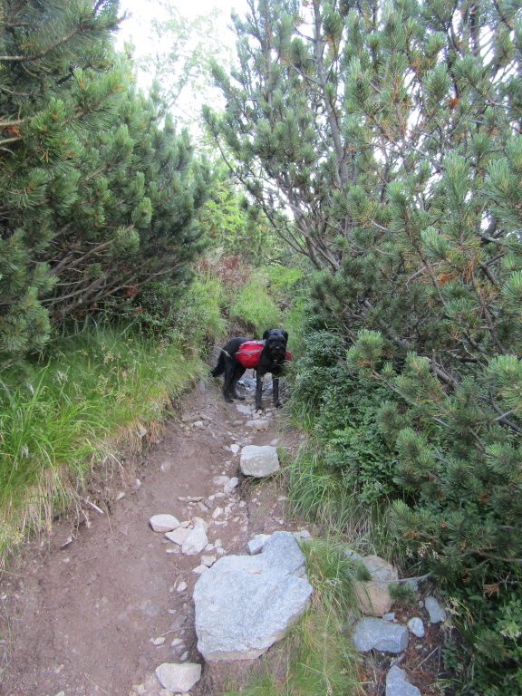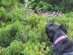 Vi började med att gå genom skog (på en stig som var kantad med blåbär. Båda hundarna älskar att beta blåbär!) som i takt med att vi hamnade på högre höjd glesnade och bestod enbart av låga tallar för att till sist var helt kallt från träd.