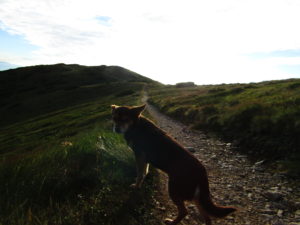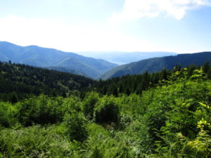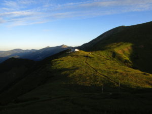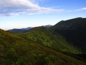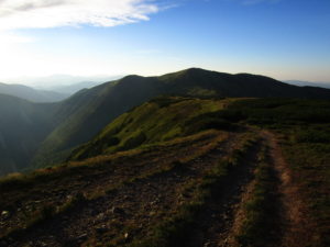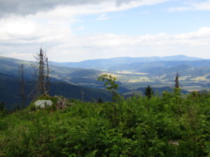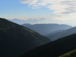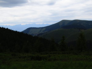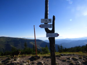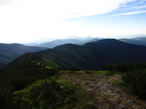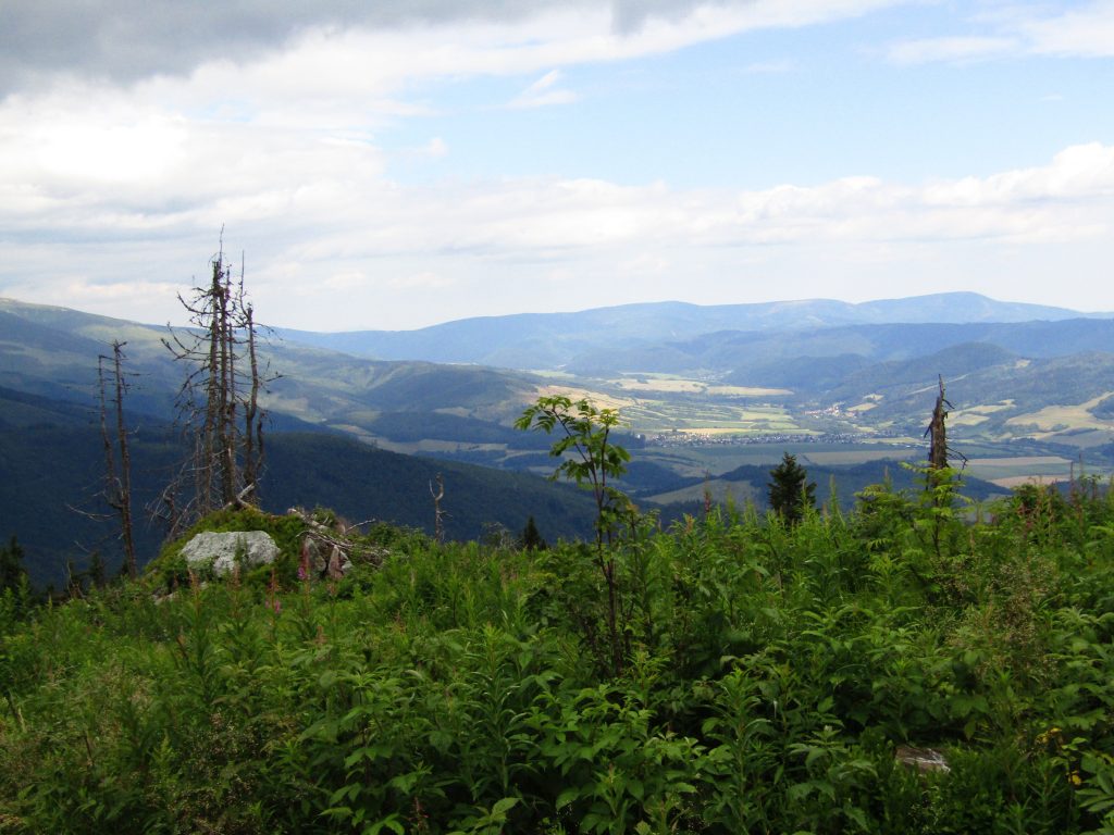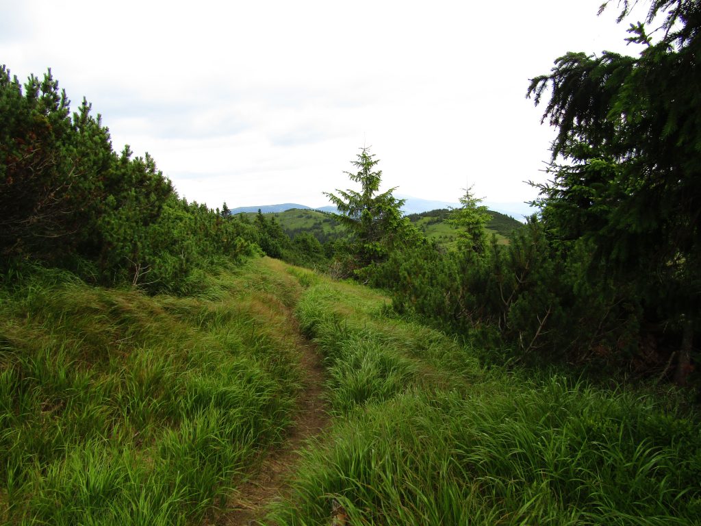 Första delen gick vi genom ett underbart bergslandskap. Vi följde ryggen precis som igår över toppar och ner i sadlar osv tills att vi gick ner till Certovica som ligger vid väg 72. En miniskidort. Pensionatet var öppet så min tanke var att gå in och fika lite. Men det enda dom kunde erbjuda var juice. Så jag beställde det. När min apelsinjuice var uppdrucken gick vi vidare.