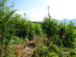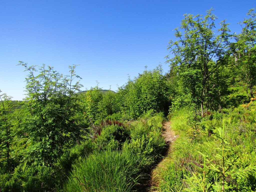 Resten av dagens vandring var i mina ögon inte fullt så vacker som igår och i morse. Nu avlöste skogar och hyggen varandra. Få platser kan tänkas bli så varma som just hyggen. Så det var skönt att moln började dra in på eftermiddagen.
