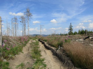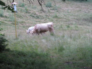 Dagsformen är precis som den låter beroende av dagen. Min dagsform idag var till en början seg. Kroppen ville inte riktigt vakna och stegen kändes allt annat än pigga, rappa och fräscha. Vi började dagen med att gå längs skogsbilvägar och stigar genom skog, kalhyggen och skogsängar. En del av mig kan förstå att man avverkar, en annan del av mig gråter inombords av alla dessa hyggen. Otaliga har vi korsat idag. Det första vi korsade var lite spännande då det var fullt av betande kossor med kalvar där. Övriga var inte så spännande, mest sjukt varma. Dagen idag har varit väldigt varm.