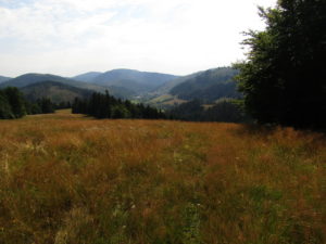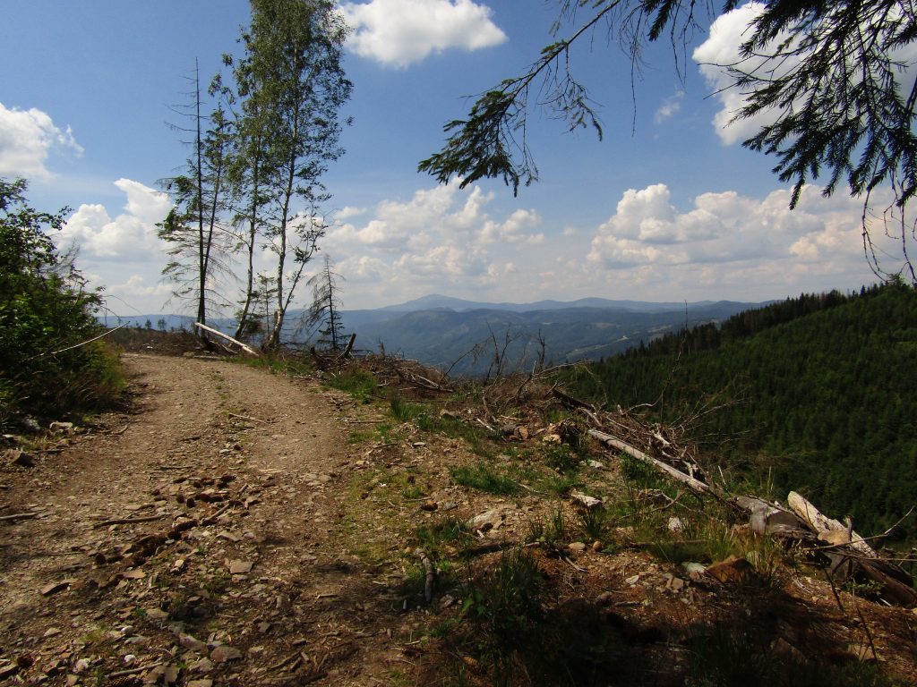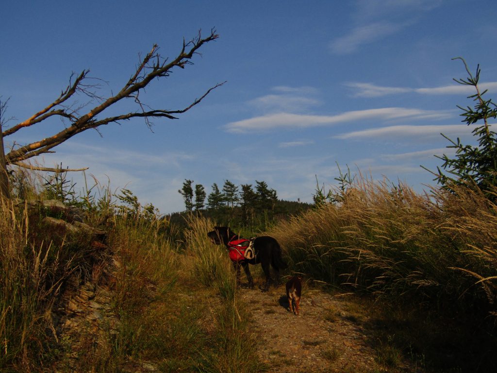 För att återgå till min hantera värmen strategi. Jag tänkte att det är bäst att hitta en plats att ta en längre paus på under dagens varmaste timmar. Den platsen blev Chata pod Stromisom. Där stannade vi i 3,5 timme. Två vandringssällskap mötte jag där under tiden som jag var där. Fick bl.a. veta mer om ledens historia. Passade också på att förhöra mig om leden framför mig. Nästa vatten skulle enligt dom finnas 3 timmar bort. Men ska man hinna till Sedlo Velovec på 3 timmar skulle man behöva gå väldigt snabbt då det är ca 16 km dit och inte helt platt..