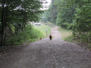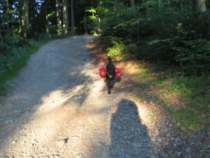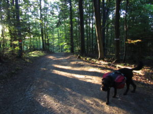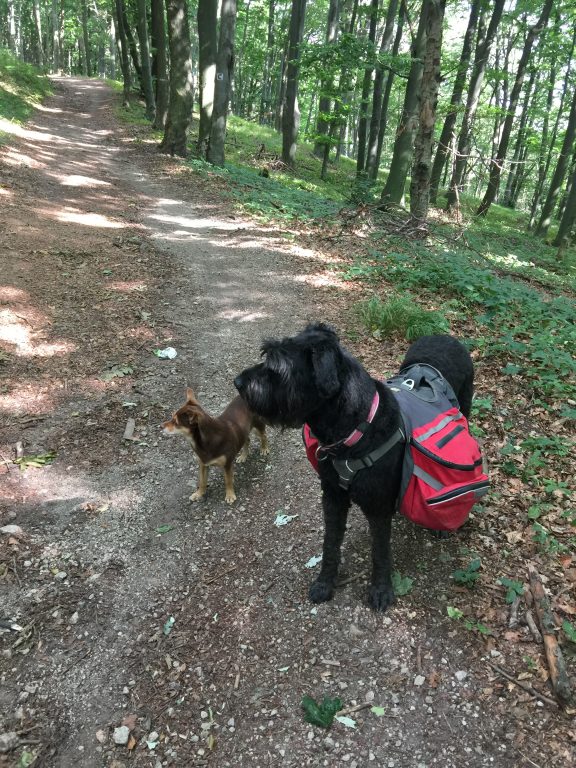 Hursomhelst så började den här dag med en lååång nedförsbacke. Ner, ner, ner hela vägen till Kosice som ligger på 200 meter över havet nånting. Det var en härlig skogsväg att gå på. Som i en allé av lövträd. Det var varmt ute redan när klockan ringde i morse och för varje timme blev det bara varmare och varmare. Vid 9 var jag nere i Kosice. Jag tog en buss in till centrum för att handla mat. En trevlig kvinna i ett grönsaksstånd utanför matbutiken vaktade hundarna och väskorna medan jag handlade. Det är häftigt hur man kan förstå varandra även då man inte pratar samma språk. Nånting som jag aldrig lär mig är: proviantera inte när du är hungrig. Det gjorde jag idag. Köpte på tok för mycket mat vilket gjorde ryggsäcken onödigt tungt. Men med mycket mat i den känner jag mig rik. Till hundarna köpte kött utöver det vanliga, mycket uppskattat!