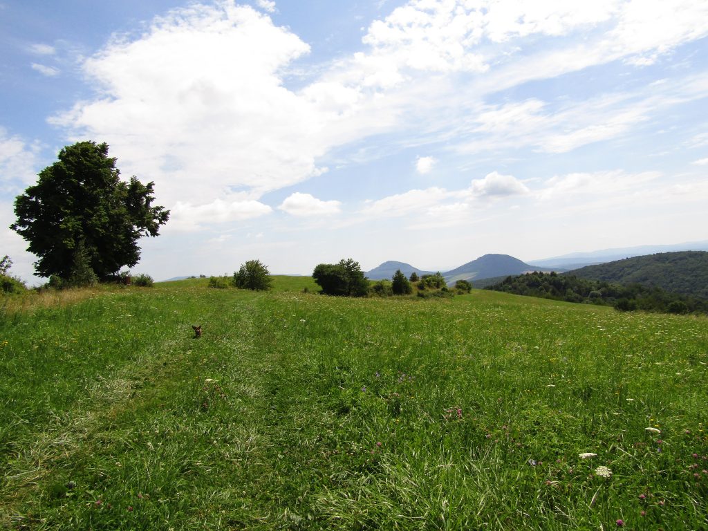 Gången från Terna till Hradisko var varm. Asfalten gör att fötterna klagar. Konstigt med väggång, den går ju fort men den känns som en evighet. Men jag peppade mig själv och hundarna med att bara vi kom till till Hradisko skulle vi ta en lång paus. Vi gick genom den lilla byn och stannade på den första kullen under ett träd. En lång paus blev det. Skönt. Sen kämpade vi oss över en äng i hettan innan vi kom in i tät skog igen som gav skugga. Vägen upp till Sedlo Certov Chata gick därför smärtfritt! Vi stannade vid det stora huset en lång stund i skugga innan vi gick dagens sista etapper. Dom gick bra, nästan enbart i skog så skuggigt och bra en dag som denna.