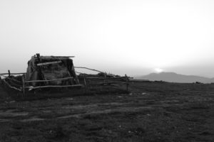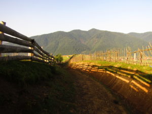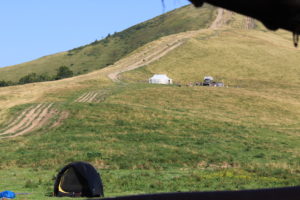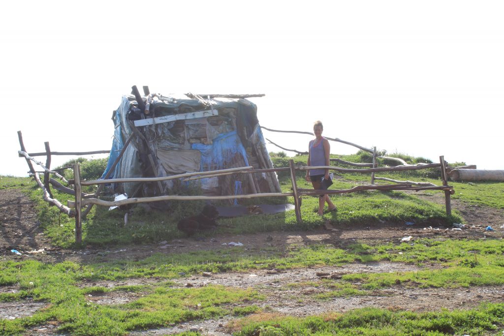 Värmen började slå till på riktigt medan vi gick genom byn. På gränsen till olidligt varmt. Det gick något bättre att gå när vi började gå uppför mot Топас, 1548 möh. Iaf så länge stigen skuggades av träd. När träden tog slut blev det helt enkelt för varmt för att gå så dagsplanen fick ändras. Värmen blev för kämpig för både mig och hundarna. Först tänkte jag att vi tar en längre paus vid vattenkällan vid 1250 möh. Där fanns också ett litet skjul som skänkte skugga. Timmarna gick men det blev aldrig svalare. Så det fick helt enkelt bli dagens slutpunkt.
