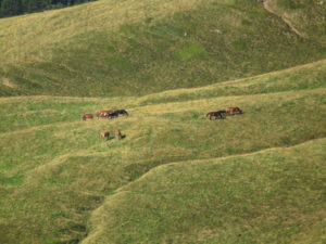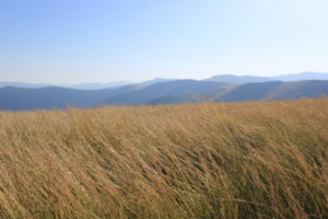 Att börja dagen med rätt så brant stigning väcker hela kroppen. Det gjorde det idag, först genom skog och sen över klassiskt gulnande gräsklädda bergstoppar. Dagens första topp blev Стоги, 1378 möh. Resten av dagen har topparna avlöst varandra och däremellan har vi varit på ryggarna.