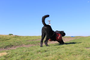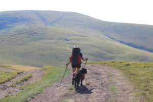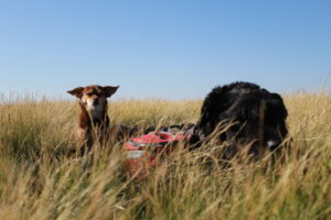 Det har varit en sagolikt vacker dag. Vackra vyer har avlöst varandra genom hela dagen. Men det gjorde också att vi inte hade skugga en enda gång. Hade det inte varit för att vinden svalkade hade jag nog inte kunnat att gå. Hundarna är bättre på att hitta skugga, dom kryper in bland buskar så snart dom får chansen.