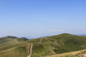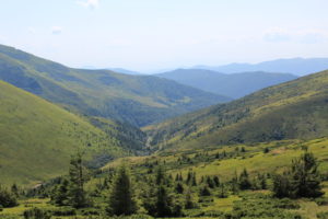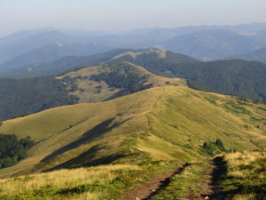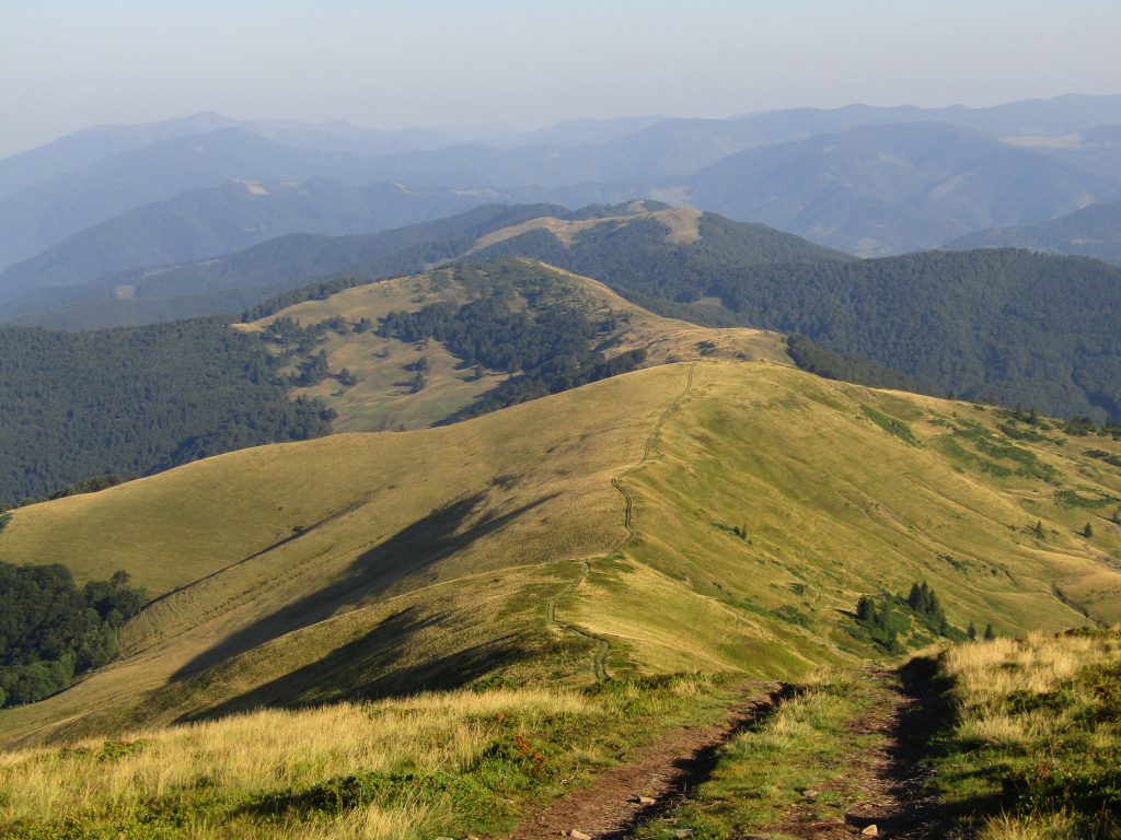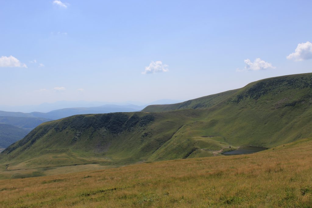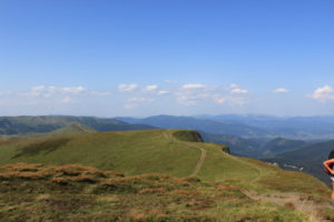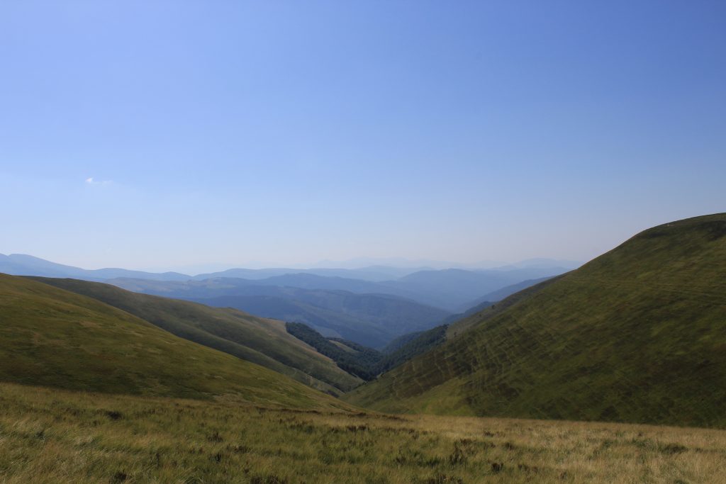 Landskapet ändrades med. Allt mer av det gulnade gräset ersattes av enbuskar. Efter Dragobratliftarna ändrades landskapet än mer och leden började att gå längs kanten av nära på lodräta bergssidor. Vi gick upp till Близниця Велика, 1881 möh innan det vände och vi började leta oss nedåt mot Рахів. Jag vek också av från leden som jag följt hela vägen från gränsen vid Близниця Велика.