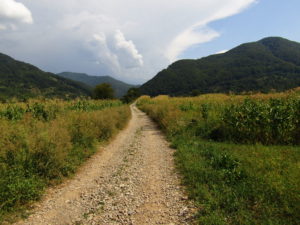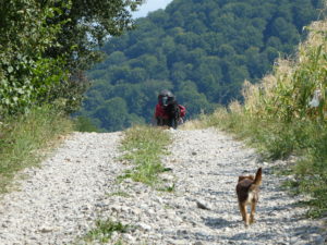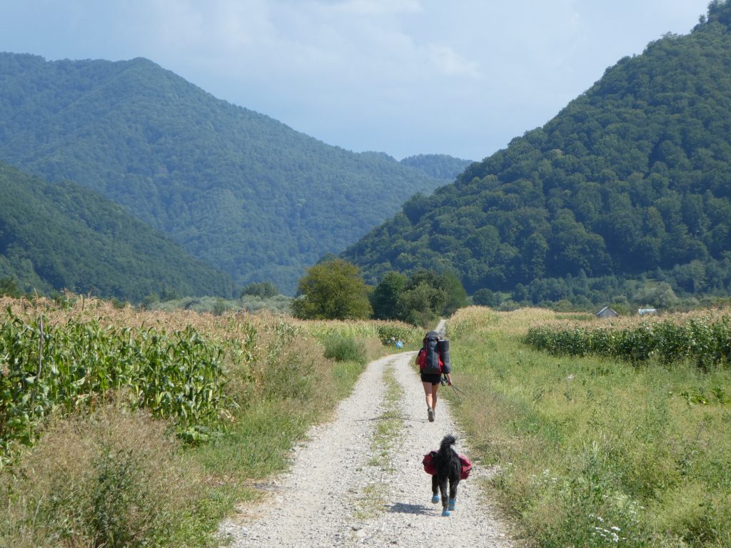 Ännu en riktigt varm dag. Från Sighetu Marmației var det väggång som gällde. I några dagar nu fram till Borșa kommer jag i huvudsak få följa vägar, oftast asfalterade och döden för mina fötter. Men det hör långvandring till. Man får liksom den terräng och det underlag som man kommer till. Vega får därför gå i sina skor vilket fungerar väldigt bra! Med dom på haltar hon inte!