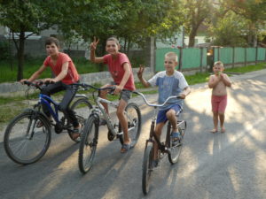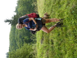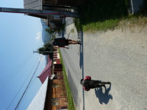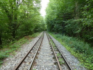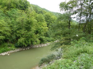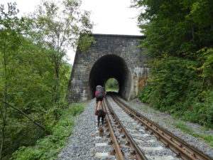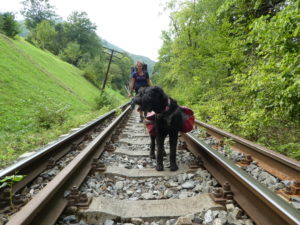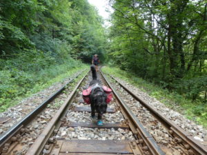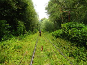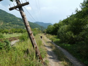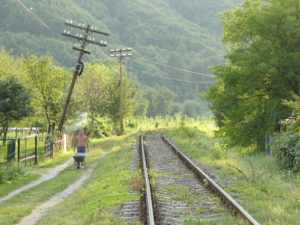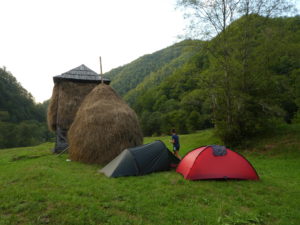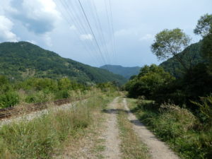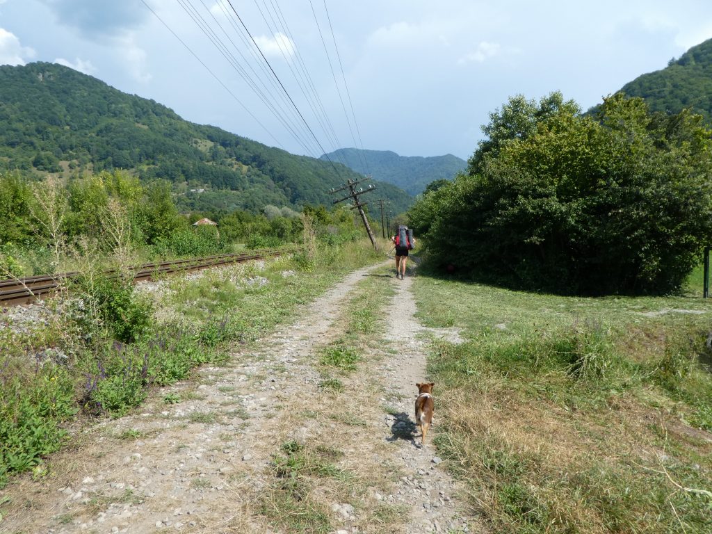 Vi började med att gå upp mot Cămara Sighet, vidare mot Crăciunești, Bocicoiu Mare och Lunca la Tisa. Riktigt varmt att gå. Så i Lunca la Tisa blev det en lång paus på ett kafé/bar innan vi gick vidare. Hela vägen här går helt nära gränsen till Ukraina. Vara ett vatten emellan. Enligt Google maps skulle det finnas en bilväg parallellt med tågrälsen från Lunca la Tisa. Efter nån kilometer tog vägen slut och kvar fanns bara en tågräls. Funderade fram och tillbaka hur vi skulle göra. Det slutade med att vi tog reda på tågtiderna för rälsen (ett dieseltåg går där 7 gånger per dag) så följde vi spåret bortöver. (Många innan oss har gjort samma sak, en tydlig stig går mitt i spåret). Några kilometer innan Valea Vișeului var vi åter på väg. Skönt. Vi stannade till på ett kafé/bar i Valea Vișeului och gick sen halvvägs till Bistra innan vi stannade på en lämplig äng för att sätta upp våra tält.