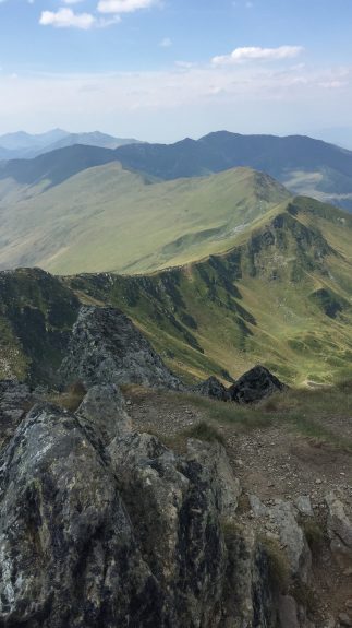 Jag har fortsatt att vandra längs samma led som jag påbörjade igår och även idag har den varit GALET vacker! Vi har fortsatt att gå längs Rodnabergens huvudrygg och gått upp och ned för flertalet toppar (Negoiasa Mare, 2049 möh, Varful Puzdra, 2189 möh, Varful Galatului, 2048 möh, Varful Gargalau, 2159 möh, Vârful Omului, 2135 möh, Cișa, 2039 möh, Varful Coasta Neteda, 2060 möh och Ineu, 2279 möh). Så väldigt mycket upp och ner sen härliga sadlar däremellan.
