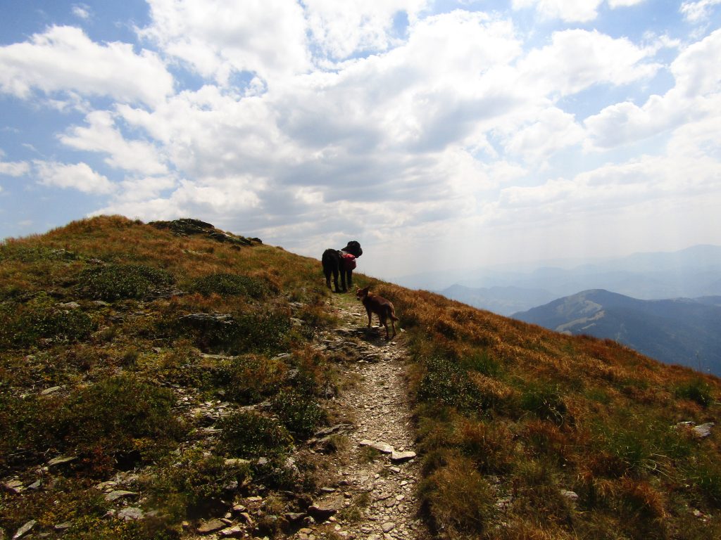 Ett kort stycke idag stötte vi på lite mer teknisk vandring (Innan Ineu). Där var det nån form av halvklättring som gällde under några meter. Vega tyckte att den ena var onödig att trixa med så hon bestämde sig för att springa runt hela problemet istället i en stor u-sväng och många extra höjdmetrar. Nu när hon är så gammal vet hon sina begränsningar och hur man finner lösningar. Vega är fantastisk! Bounty är också fantastisk, men inte lila klok som Vega än.