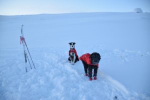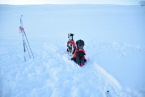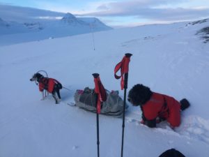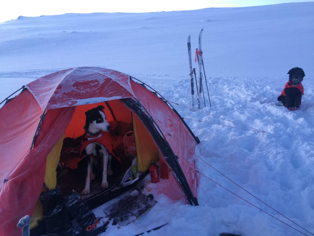 I stugan bäddade jag ner hundarna under flera yllefiltar och klädde mig själv i dunbyxor samt jacka och kröp ner i sovsäcken för att hålla värmen.