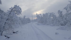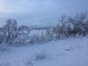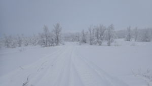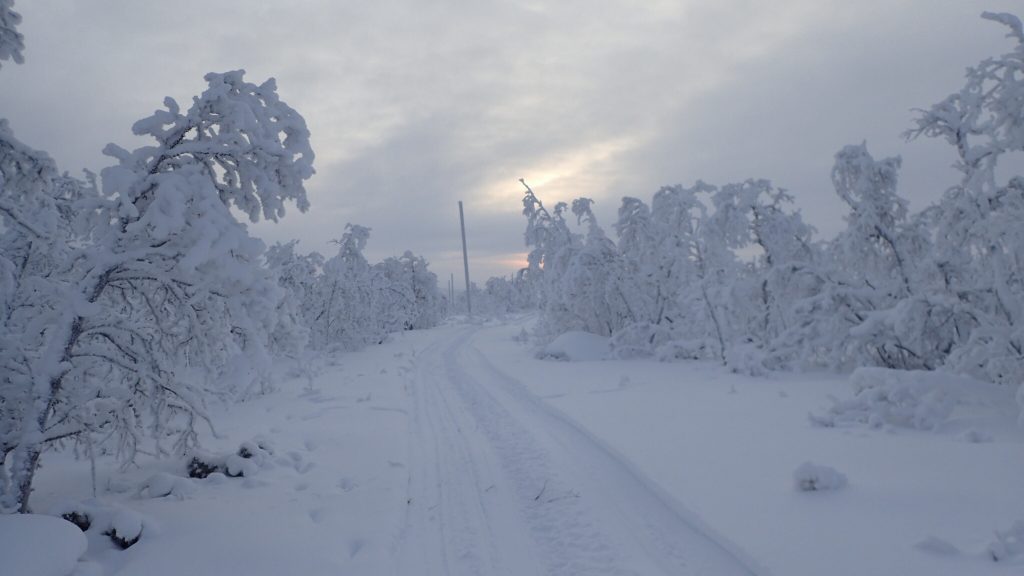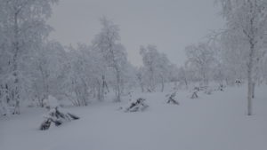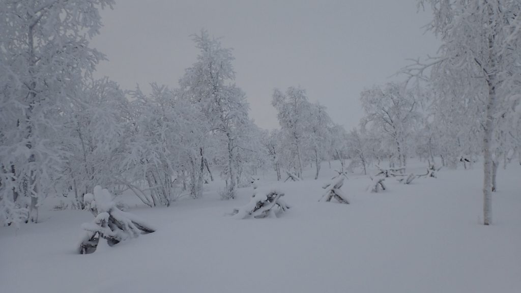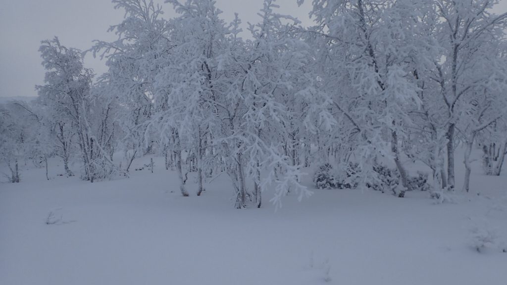 När vi kom ner på lägre höjd och hamnade i björkskog trodde jag att jag hamnar i Narnia. Det är så vackert med alla snötyngda träd!