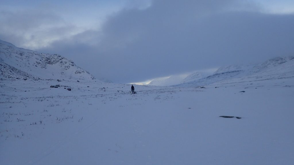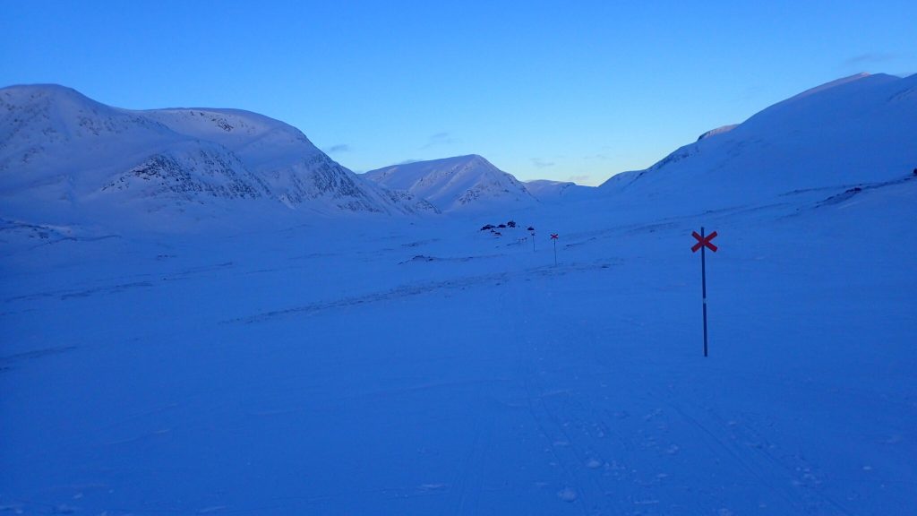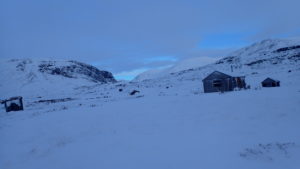 Framme vid Kaitumjaure tror jag att dom flesta upplever sig som lite lurade som man hamnat nedanför stugan och måste upp för en brant backe för att ta sig till den. Men så skönt när den var gjord. Att installera sig i säkerhetsrummet. Få igång värme i kaminen och laga mat. Min förkylning har blivit sämre och jag känner mig febrig utöver snorig och hostig. Hoppas att en lång natt med sömn ska hjälpa.