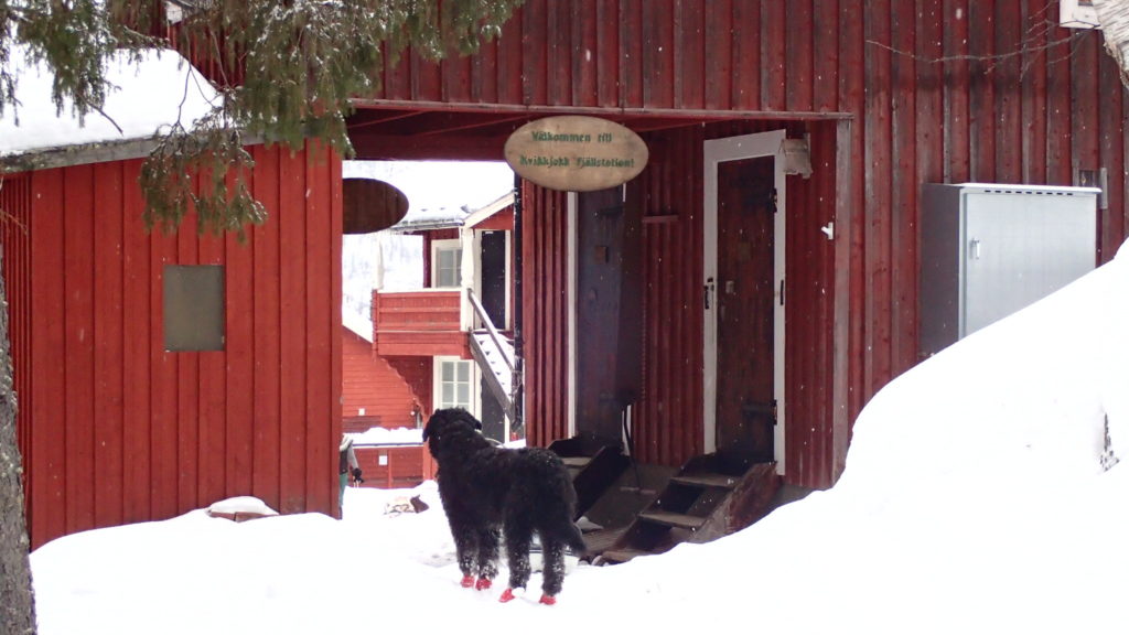 Kvikkjokks fjällstation har ännu inte öppnat för säsongen. Men dom lät oss bo i en stuga på gården. Trevligt! Här hade vi även depålådor som väntade på oss. Gött med ny mat och snacks. Men tanken på hur tunga pulkorna skulle komma att bli var lite jobbigare.