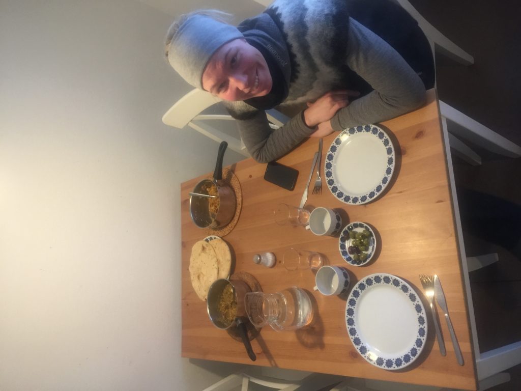 Vi lagade massa god mat på kvällen, bla pannkaka på ”stekpannebrödmixen” som jag hade med. Mette har med äggpulver som vi blandade i smeten. Perfekt resultat! Till pannkakorna åt vi den torkade sylten. Eller vi åt den inte torr, men den blir verkligen bra efter blötläggning i hett vatten. Till pannkakorna drack vi lite vitt vin. Lyxigt!