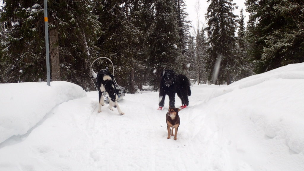 Vega var väldigt stel igår på kvällen. Men idag på morgonen var hon som vanligt igen. Men jag lät henne inte dra idag på grund av det. Peak drog den lilla pulkan och jag den stora medan Vega och Bounty sprang lösa bredvid. Så roligt att Bounty gått hela tiden själv i tre dagar nu. Eller hela tiden är att överdriva. Men säkert 99 procent av tiden.