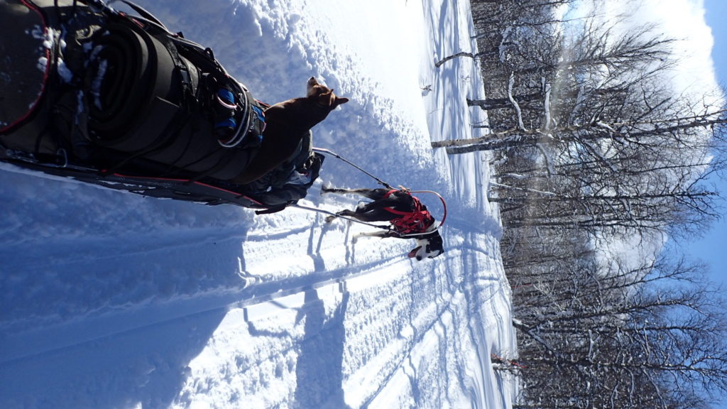 Jag och Vega drog den stora pulkan tillsammans och Peak den lilla. Som alltid efter ny depålåda var därför pulkorna extra tunga.