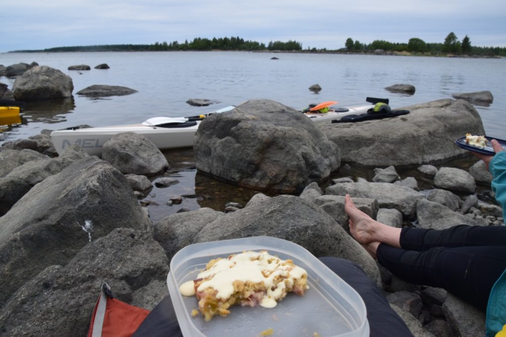 Vid Torngrund stannade vi och lunchade. Där kom nästa stora överraskning. Rabarberpaj med vaniljsås! Lycka!
