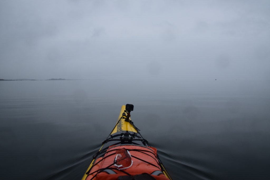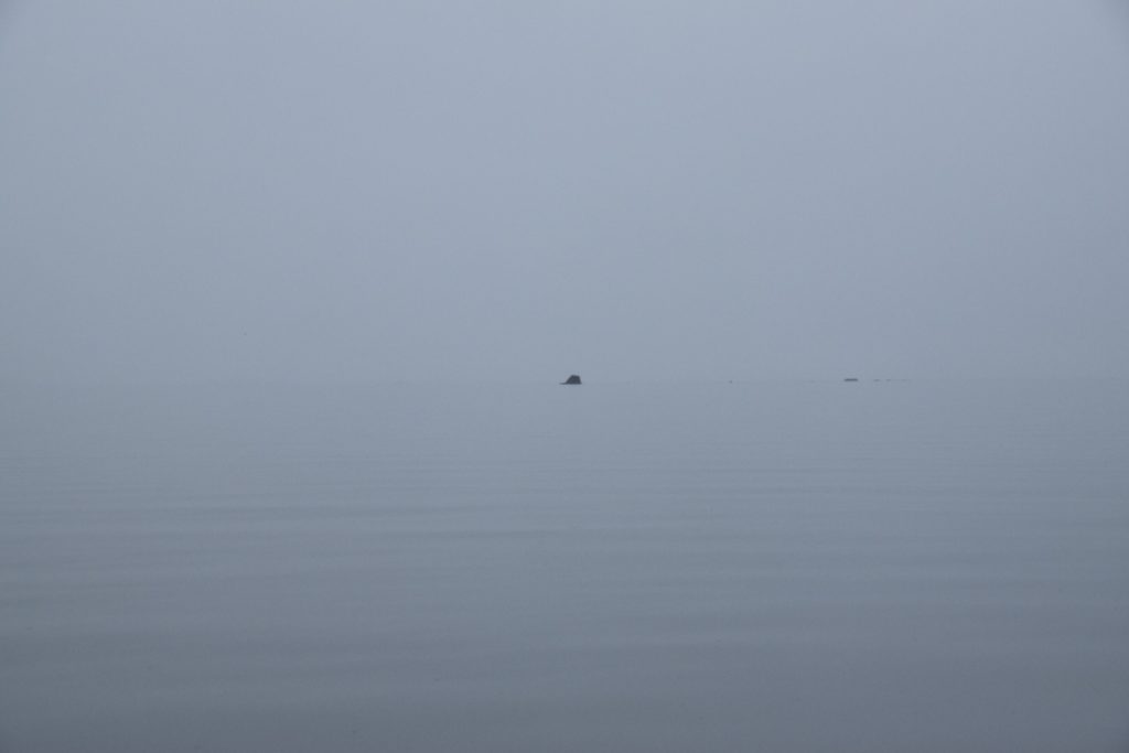 Kort därefter blev världen i gråskala. Eller i silver, om man vill känna sig lite mer positiv. Dimma kom och gick. Himlen var grå. Vattnet färgades grått och likaså träden som jag såg på avstånd.