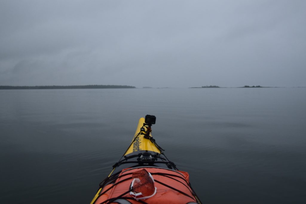 Två saker hände så snart jag och Eva vinkade hejdå. Vinden vred och blev nu mot mig och molnen blev allt tyngre. Snart blev regn ett faktum. Men först hann jag uppleva en del drama.. vad många inte vet är att ta kisspauser är bland det farligaste man gör under en paddlingstur. För några veckor sedan trodde jag att en gås skulle bita mig i rumpan. Idag blev jag ATTACKERAD av tärnor. Medan jag satt på huk för att kissa kom flera tärnor dykandes emot mig. Jag fick ta av mig kepsen för att vifta med den i syfte att försvara mig. Jag var på riktigt rädd! Inget djur i världen kan vara mer aggressiv än så.