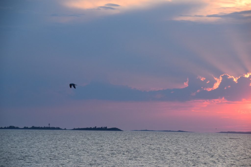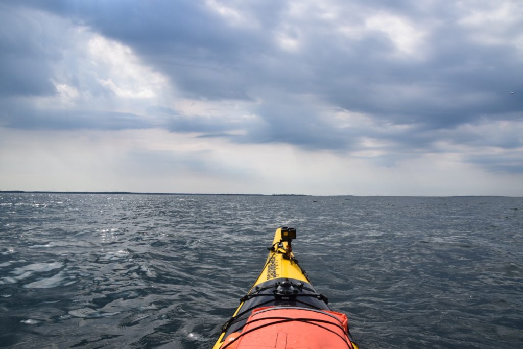 Drömmig start på dagen med trevligt sällskap och god frukost! Kunde tyvärr inte börja paddla förrän vid lunchtid då den hårda vinden höll i sig fram tills dess. Motvinden höll däremot i sig hela dagen. Prognos lovade 3-5 m/s. Verkligheten gav det dubbla. Dom vimplar jag såg stod rätt ut från sina flaggstänger. Det var stundtals väldigt tungt att ta sig framåt. Första timmarna fick jag dessutom paddla i rätt så mycket sjö. Men som jag sagt tidigare. Ingen hade varvat mig innan jag stack ut att det farligaste skulle vara att stanna för kisspauser. Blev anfallen även idag av extremt aggressiva tärnor.
