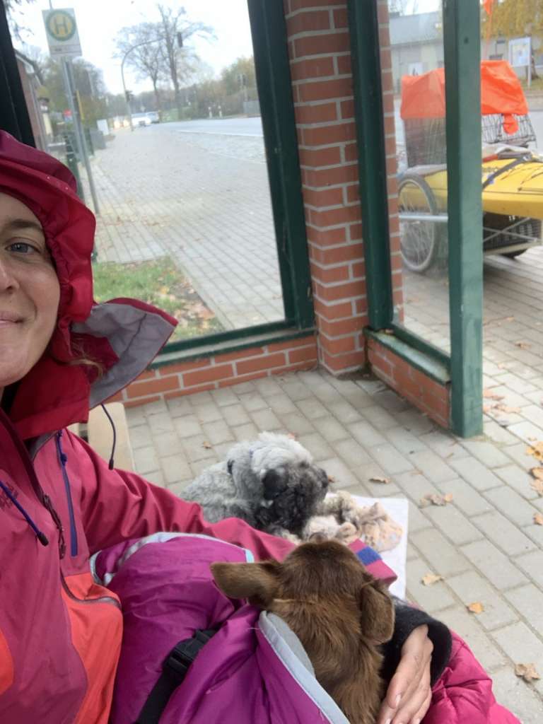 Som tur är stöter vi på saker som piggar upp med jämna mellanrum. Något av det bästa idag var ett minibibliotek som något fixat utanför sin tomt. Jag blir så glad när jag stöter på sånt! Andra saker som också alltid piggar upp är varmt te 🙂 känns lyxigt att ha en termos med varmt vatten med sig. Idag stannade vi till i en busskur i skydd från regnet och fikade samt väntade ut vädret.
