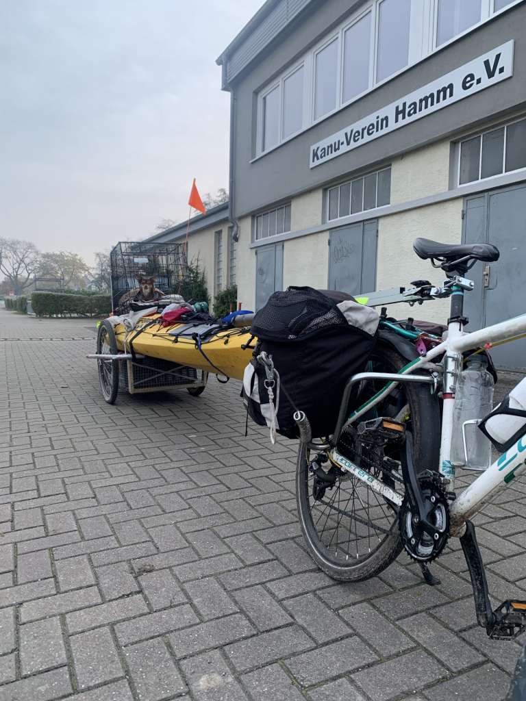Vi blev ganska snabbt varse om vi vi kommit in i den mest befolkade delen av Tyskland. Vi passerade många industriområden och städerna kom allt tältare. Som vanligt är det trixigt att köra med kajaken på släp då. Vägen jag cyklade blev några kilometer längre mot vad jag tänkt mig då vi stötte på väghinder som inte kunde passeras med kajaken samt avstängda vägar. Det är en sån sak som inte gör något egentligen, det är vad det är liksom. Men blev ändå lite småsur vid några av dessa tillfällena. Jag hamnade även mitt i uppbygganden av en julmarknad. Det var inte heller helt önskvärt och inte helt enkelt att ta sig ut från. Men det gick!