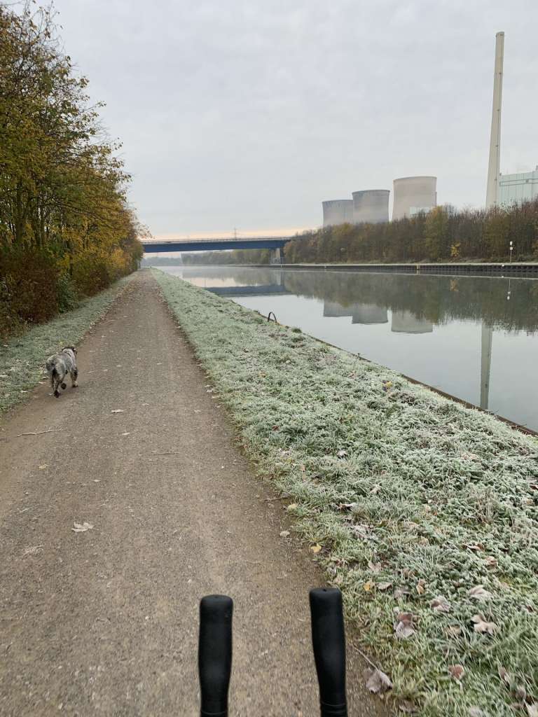 Vaknade till en vacker frostig höstdag. Började dagen med att cykla längs floden Lippe och kanalen Datteln-Hamm. Härlig cykelväg där vi stundtals stötte på en hel del fotgängare.