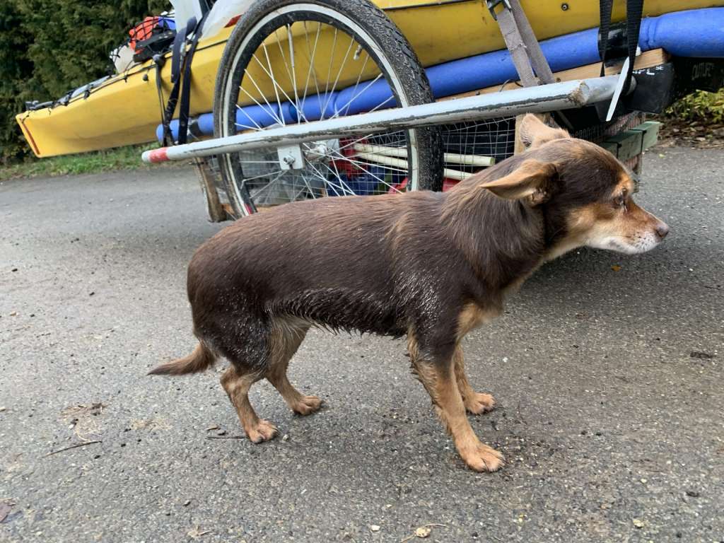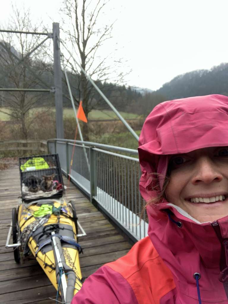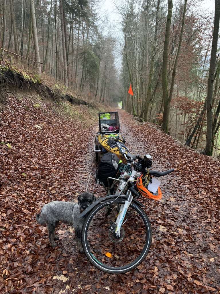 Natten kan tänkas ha varit den kallaste hittills. Men vi höll oss varma. Asta med täcke och egen sovsäck, jag och Bounty delade på den andra. Hela natten regnade det. Ett underkylt regn som jag inte alls hade någon lust att kliva upp i. Så istället tog vi sovmorgon och började inte packa förrän regnandet gav upp vid 9-tiden. Asfalten var helt okej att cykla på. Men redan efter ett par hundra meter skulle vi över en träbro. Den var som en sluttande isbana. Jag hade stora problem att komma över den.. men med myrsteg var vi till sist över!
