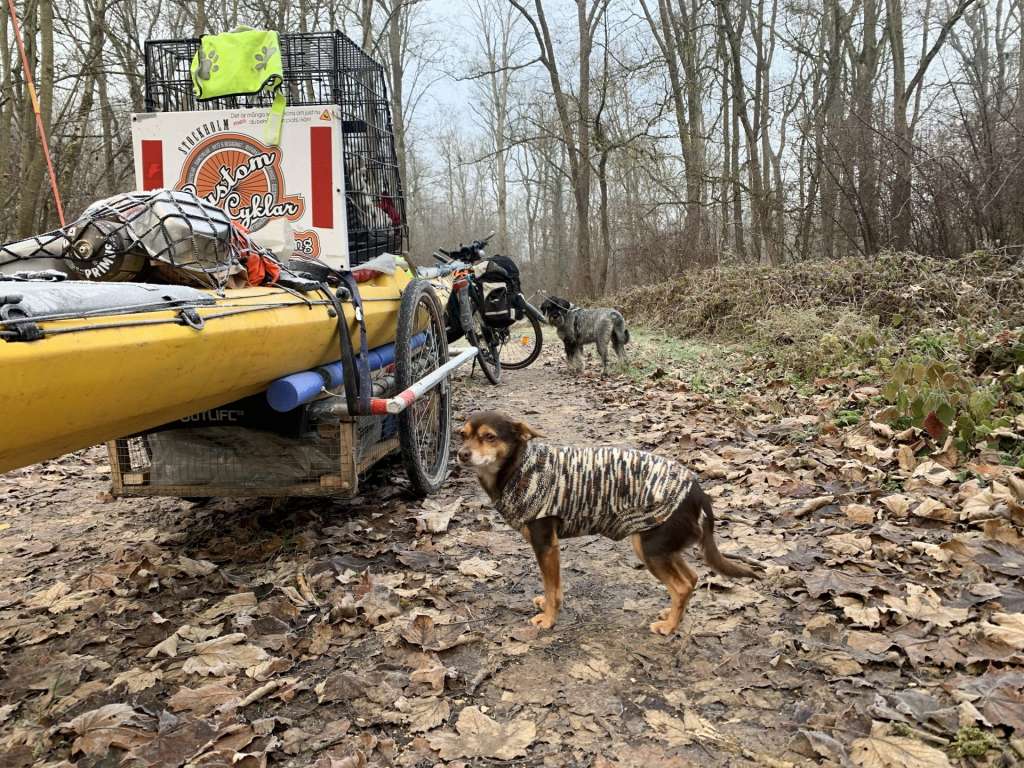 Jag har börjat att lägga in lite fler lekpass på dagarna till Asta. Hon verkar uppskatta det! Lite bus och lite tricksträning. Man märker väldigt väl på henne när hon tycker att det händer för lite. Helst ska det hända massor hela tiden på dagarna tycker hon.. Bounty är mer chill. Nån liten minut med lek sen är hon nöjd. Hon är iofs nöjd om man bara bäddar ner henne i något varmt och fluffigt. Samtidigt som hon är väldigt duktig på att gå/springa bakom hundkajakcykelcirkusen. Hon går säkert runt 20 km varje dag. Ibland mer och ibland mindre beroende på vilka vägar vi är på och vädret.