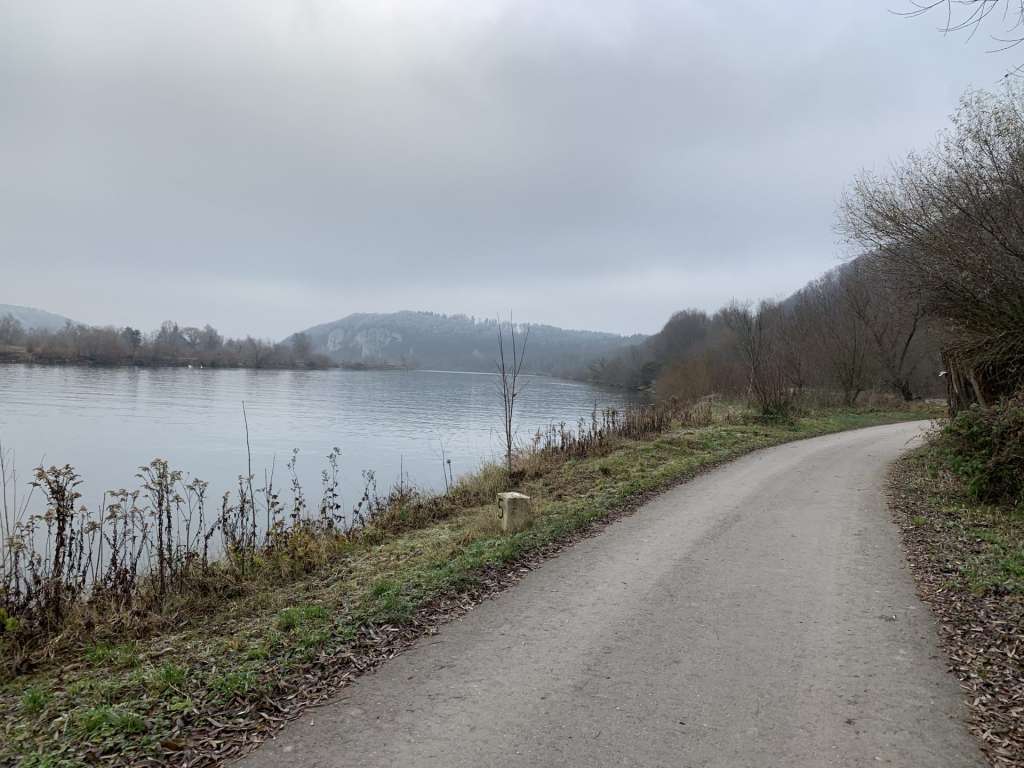 En stor del av dagens cykling har gått längs grusvägar. Det är vackert. Men tungt att cykla på. Sen gäller det att väja för alla potthål! Det var väldigt stämningsfullt i början av dagen med dimman, dom gråa träden, hägrar, frosten och lilla Donau som flöt vid sidan om oss.