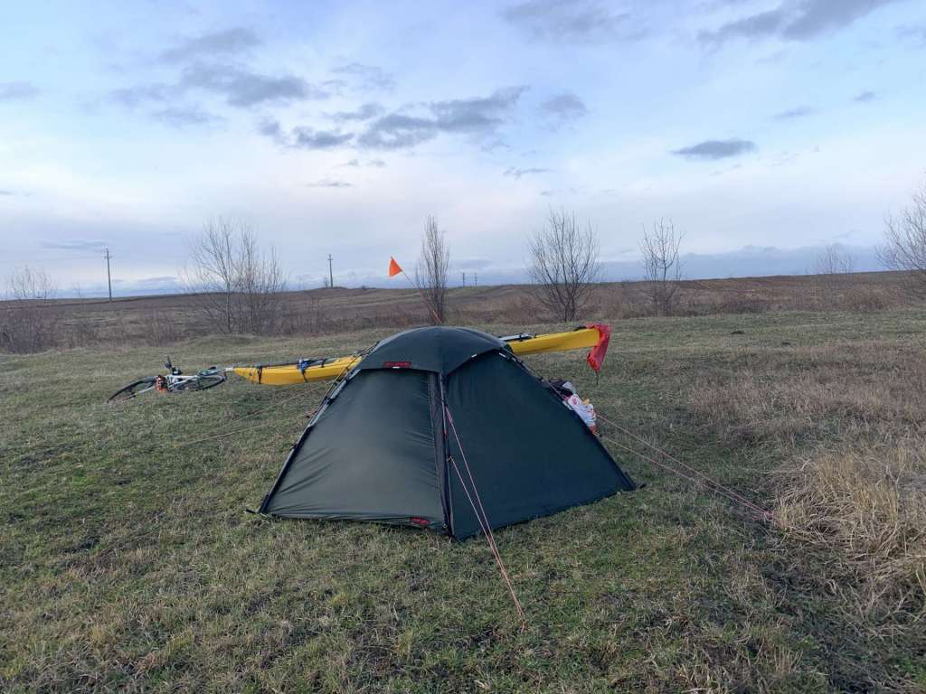 Det blåste hårt precis hela natten. Som skönt var slutade det att regna nån gång mitt i natten och fördelen med den hårda vinden var att tältet var helt torrt när det var dags att packa ihop det! Vinden mojnade något under dagen, men det blåste ändå ungefär 8-10 m/s i medelvind. Hade däremot turen att ha den med oss! Annars hade jag aldrig tagit mig framåt!