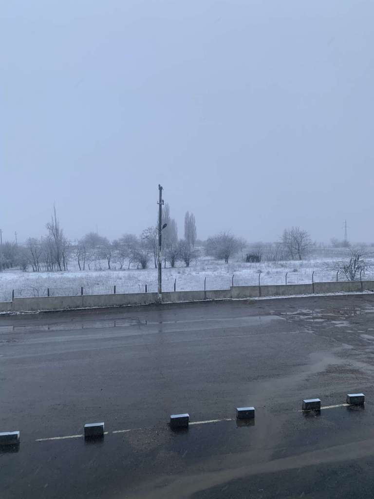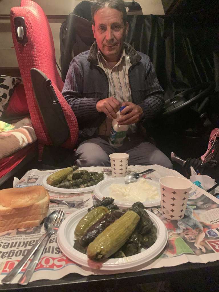 I natt var det snöstorm och världen låg vit utanför fönstret när jag vaknade. Deniz (som jag liftade med från Ungern hem till Sverige) hörde av sig för några dagar sedan och sa att han var på väg norrut igen. Vi bestämde att vi skulle försöka få till att träffas på en plats där våra vägar korsades. Det visade sig bli just här! Utanför motellet som jag bor på är en jättestor lastbilsparkering. Det var väldigt trevligt att träffa Deniz igen! Han hade förberett en massa mat så det blev en riktig ätarfest på kvällen!