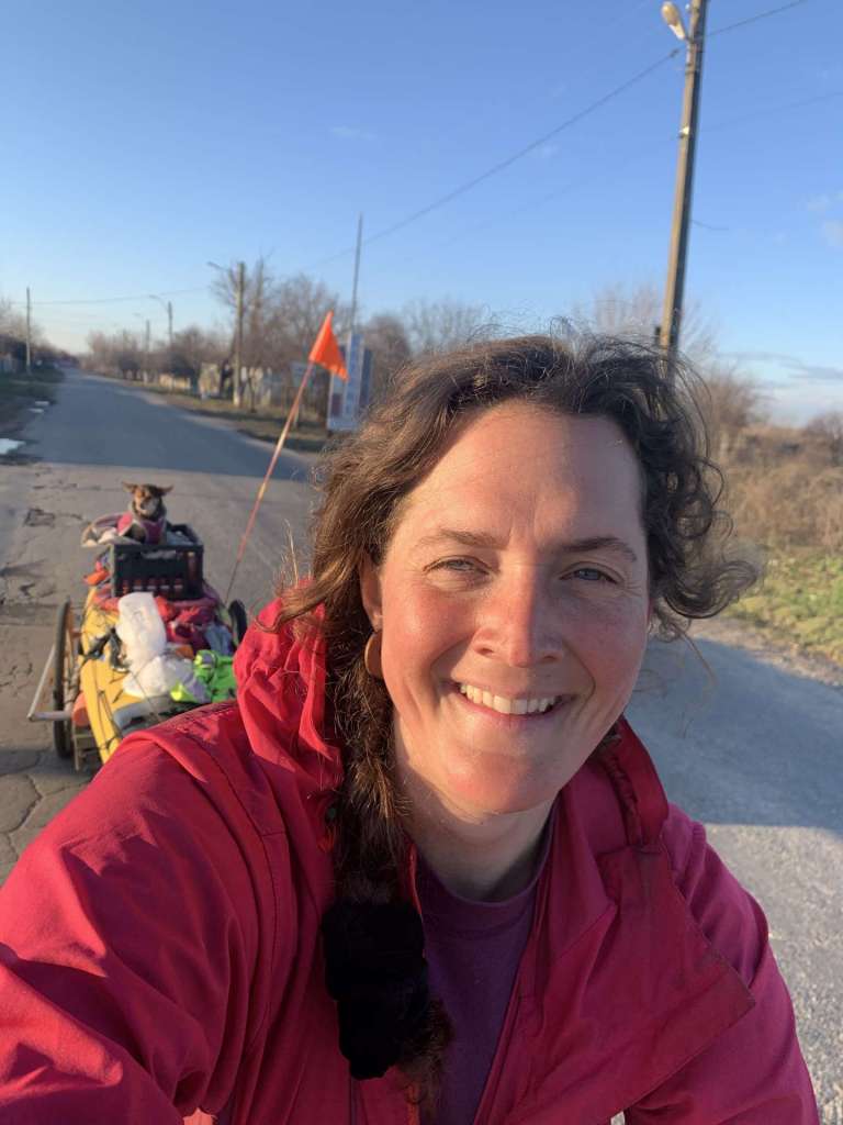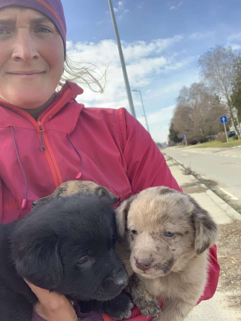 När vi cyklade ut på väg E79 kom vi nästan genast till en kö med lastbilar som väntade på att få korsa gränsen till Bulgarien. Jag bestämde mig därför för att fortsätta cykla i Rumänien istället. Precis innan staden Calafat, fortfarande på motorvägen, hör jag något som piper/skriker till vänster om mig. Kollar upp och tror först att jag ser en stor svart råtta. Men ser sen snabbt att det är tre stycken riktigt unga hundvalpar som kravlar omkring. Jag blir orolig för dom och stannar min cykel, stannar trafiken och springer ut till dom och hämtar dom. När jag sen står vid säkerhet igen vid sidan av vägen med valparna i famnen ringer jag till Delia som driver hundsheltret i Brasov för att fråga vad jag ska göra. Känner mig rådvill. Jag hinner bara påbörja samtalet med henne så kommer en man ut från industribyggnaden som jag stod utanför. Han kan ingen engelska, men jag förstår att han säger att valparna är hans och han tar dom i famnen och bär in dom till den inhängnade industritomten. Där finns ett femtiotal andra unga hundar. Inga äldre. Jag frågar var tiken till valparna finns. Han börjar bli arg, säger och visar med hela kroppen att jag ska gå därifrån. Han följer efter mig och börjar säga saker som jag tolkar är att Bounty är hans hund och han försöker ta henne från mig. Jag blir rädd. Sjukt rädd och trampar så fort jag bara kan därifrån. Kändes som ett svek mot valparna. Men vågade inte göra något. Dom kan ju också ev ha det ”bra” där. Han var ju inte hårdhänt eller så med dom. Men så små valpar behöver sin mamma.